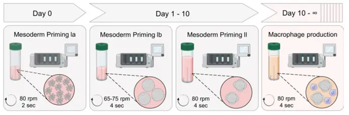 Reference: Ackermann et. al. (2024) Standardized generation of human iPSC-derived hematopoietic organoids and macrophages utilizing a benchtop bioreactor platform under fully defined conditions, Stem Cell Res Ther. 2024; 15: 171