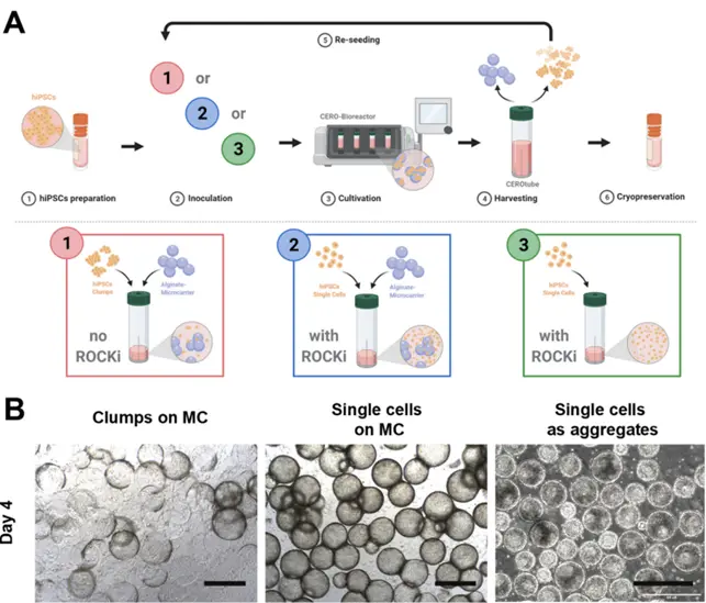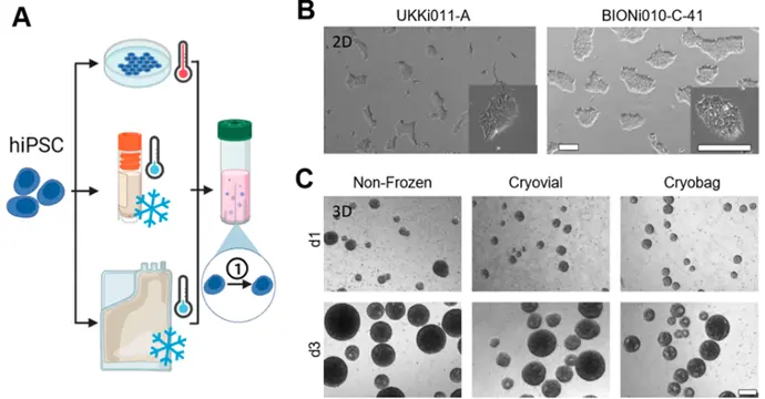 Reference: Meiser et. al. (2023) Application-Oriented Bulk Cryopreservation of Human iPSCs in Cryo Bags Followed by Direct Inoculation in Scalable Suspension Bioreactors for Expansion and Neural Differentiation, Cells. 2023 Jul; 12(14)