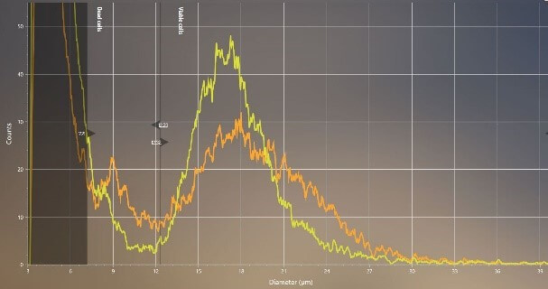 In the example shown, freshly isolated human endothelial cells were compared to cells after the first passage. Despite the initial sample containing debris and a heterogeneous mix of viable and dead cells, CASY accurately counted the cells, ensuring consistent and reproducible results.